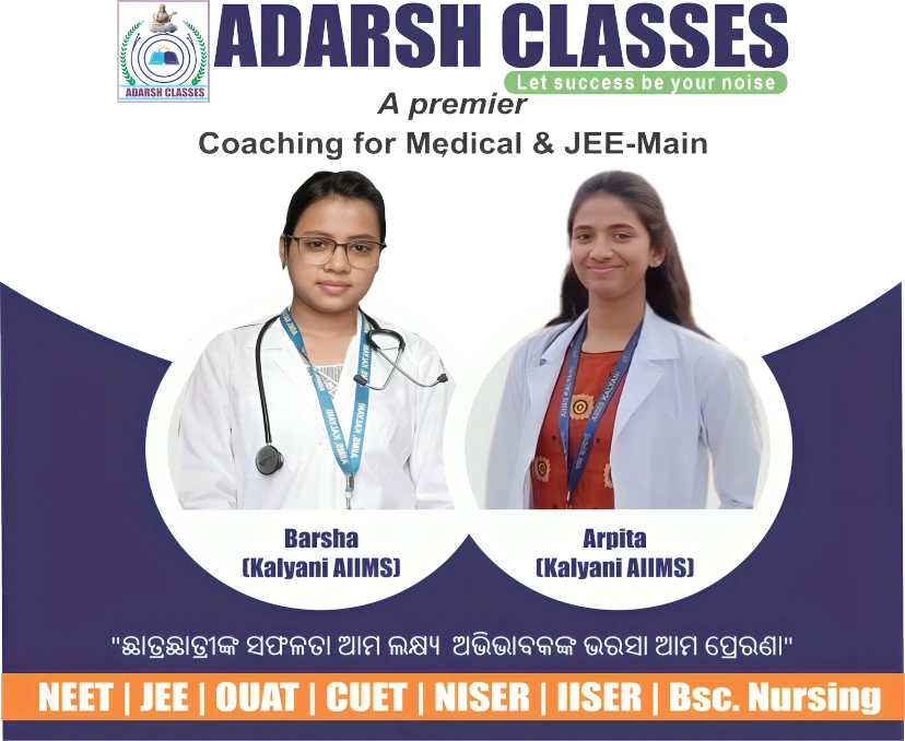 At Adarsh Classes, we believe in nurturing talent, inspiring excellence, and guiding students toward academic success. Established with a vision to provide quality education, we specialize in NEET-UG,JEE-Main,OUAT and CUET courses for students who aspire to achieve their dreams through hard work and the right guidance.