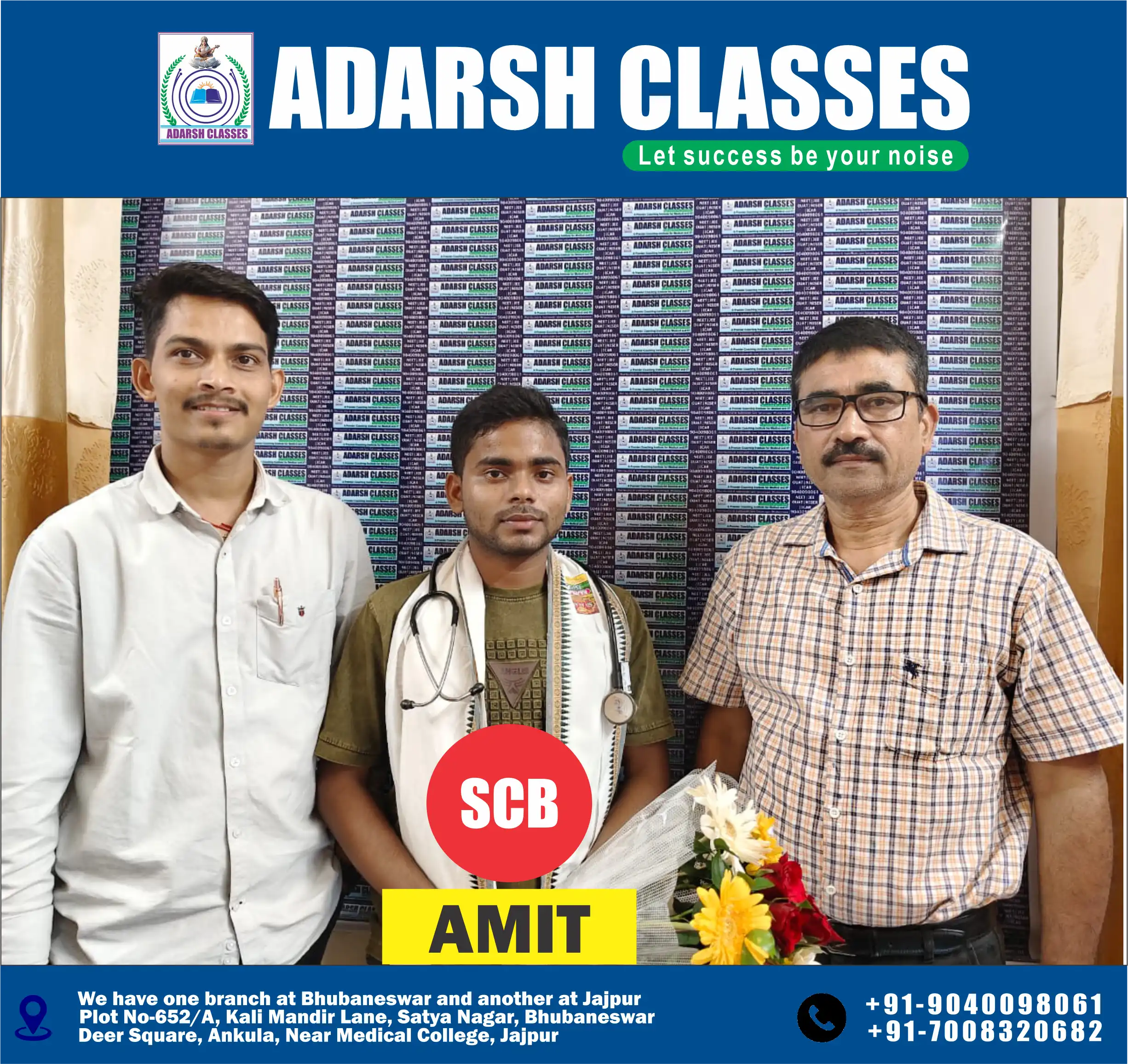 “I am Sthitaprajna Sahoo, a 2nd-year MBBS student. Rashmi Sir’s Physics, Sinha Sir’s Chemistry, and Ajeet Sir’s Biology made the journey easier. Their teaching dedication and motivation are unmatched!”